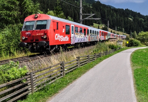 Treno che va da Dobbiaco - San Candido a Lienz e trasporta anche le biciclette di chi dopo 502 km. non vuole tornare indietro in bici.
