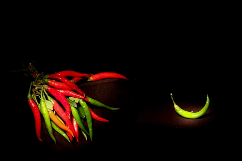 Foto dell'autore francescacalo candidata al contest fotografico bicolore su Dizy. Data inserimento: mercoledì 3 settembre 2014. Titolo: Peperoncini rossi e verdi