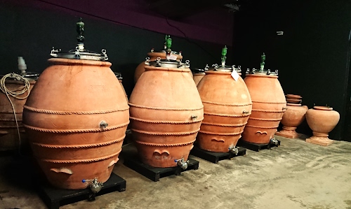 Cantina toscana con orci di terracotta