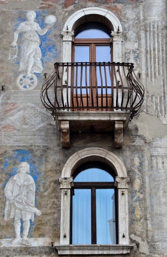 anche la finestra sottostante al balcone valorizzando al meglio gli affreschi