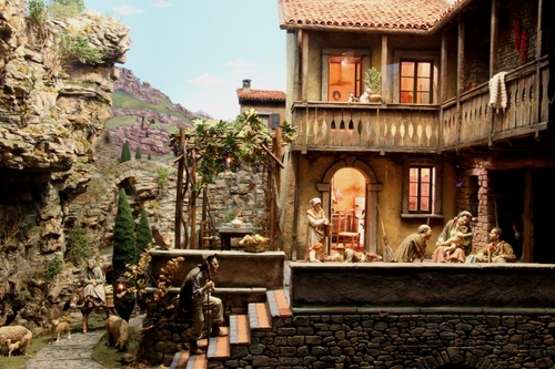 Altri tag (senza riscontro): gesù, terrazza, pecoraio, giuseppe, muro, natività, pastorelli, bambini, statuette, porte, sassi, tetti, remagi, luci, animali, monti, personaggi.
