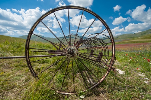Tag: nuvole, ruota, erba, raggi, campagna, cerchio, cielo, fiori, verde, agricoltura, azzurro, cerchi, ferro, campo, metallo, ruote, prospettiva, attrezzo, prato.