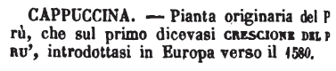 Cappuccina - Pianta originaria del Perù, che sul primo dicevasi crescione del perù, introdottasi in Europa verso il 1580. [immagine] |
